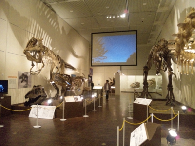 写真のように大型の恐竜から、小型の恐竜まで数体のレプリカを展示しています。