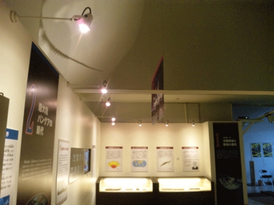 恐竜の骨以外にも、恐竜に関する資料などが展示されています。その資料、ポスターなども当社のアームライトでライティングしました。