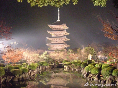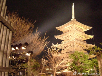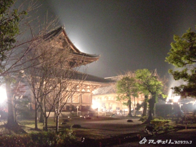 五重塔と、お庭です。大ルーズショットがあった為、お庭、金堂、講堂とほとんどのところをライトアップしました。