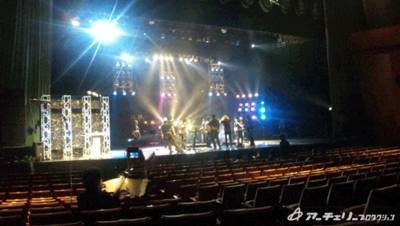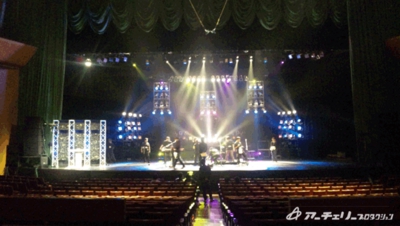 上下の2段イントレですが、ライト位置がかなり低いですが、この写真に写っているテレビカメラの位置からバンドメンバーを撮ると絶妙の高さなのです。
